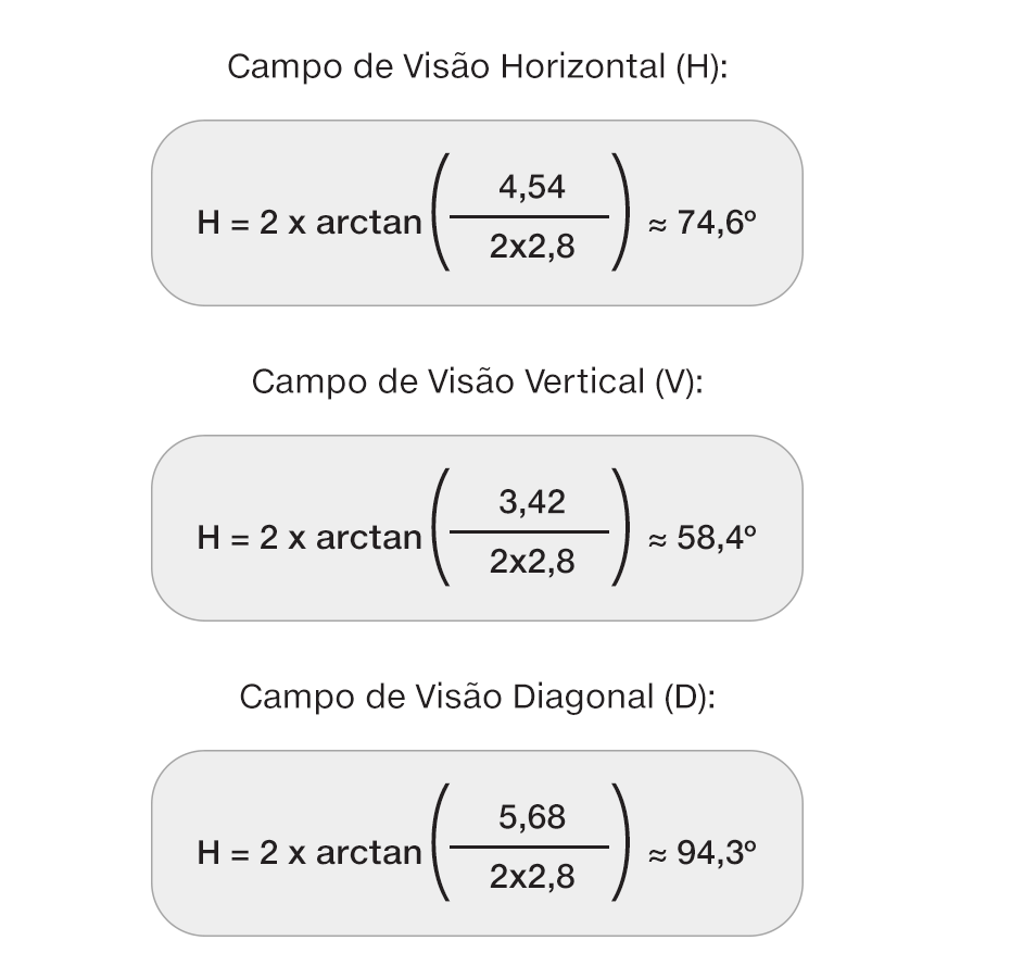 O campo de visão de uma câmera pode ser calculado a partir da relação entre a distância focal da lente e o tamanho do sensor. Esse cálculo permite determinar de forma aproximada o ângulo horizontal, vertical e diagonal de abertura.